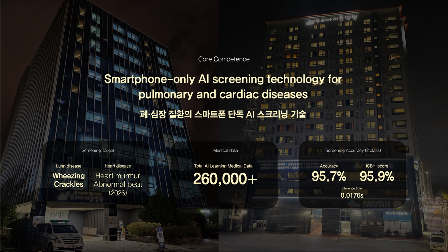 Aimost 앱만으로 의사가 청진하듯 쉽고 간단하게 이상 호흡음 · 심음 소리에 대해 AI 판독이 가능합니다.